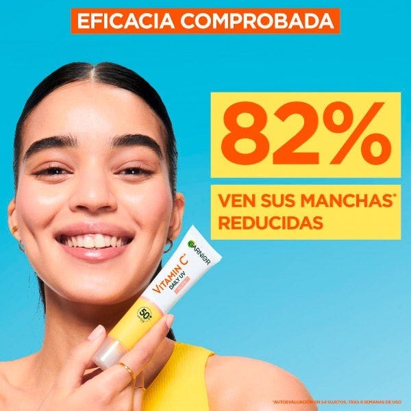 Fluido UV Diario Iluminador con SPF50+ para proteger, prevenir y reducir las manchas oscuras de tu rostro dejando un efecto glow en la piel. Diseñado para transformar tu rutina de cuidado de la piel y combatir las manchas oscuras. Eficácia Probada. Este producto con acabado glow, no solo protege tu piel contra los daños del sol con SPF50+, sino que también combate activamente las manchas oscuras.