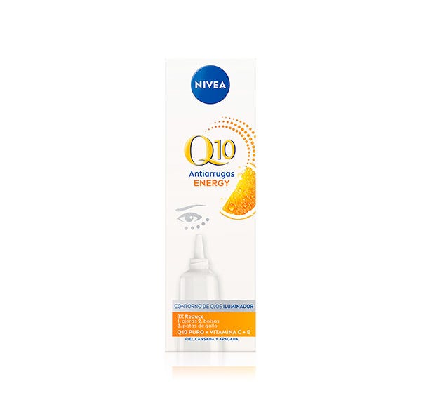 Q10 ENERGY Contorno de ojos Energizante: Este Contorno de Ojos Iluminador cumple una triple función reductora, reduciendo ojeras, bolsas y patallas de gallo. Su fórmula contiene Q10 Puro, Vitamina C y Vitamina E.