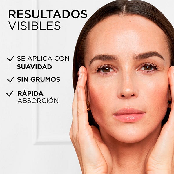 Aplica el sérum con el dosificador doble sobre rostro y cuello limpios. Luego aplica la crema con movimientos circulares.