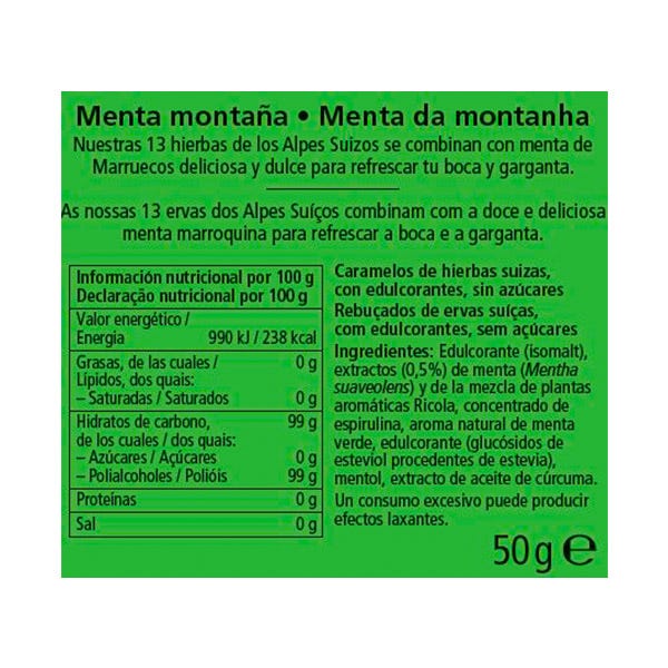 Gama de productos con 13 hierbas suizas, que proporcionan sabor característico y suave efecto balsámico, aliviando y refrescando vías respiratorias y garganta.