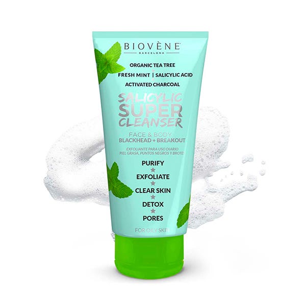 El limpiador para rostro y cuerpo que combate los puntos negros y las espinillas con ácido salicílico, carbón vegetal y árbol de té orgánico aclara la piel y elimina eficazmente las impurezas, el aceite y la suciedad, dejando la piel suave, uniforme e hidratada.