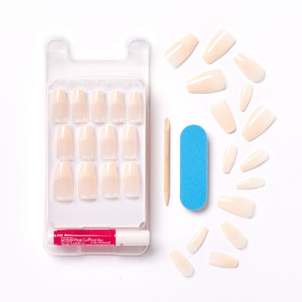 El kit contiene 28 uñas, pegamento de gel rosa (2 g), mini lima, palito de manicura.