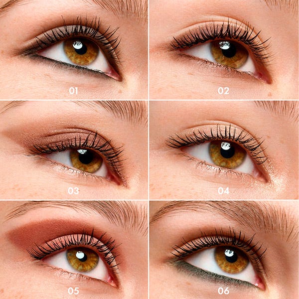 Para crear un look de delineado de ojos definido, simplemente aplica el lápiz directamente a lo largo de la línea de las pestañas para conseguir líneas precisas. Para un efecto suave y ahumado, dibuja una línea a lo largo de la línea superior y/o inferior de las pestañas y difumínala suavemente con el aplicador de esponja integrado. También puedes usar el lápiz sobre el párpado y difuminarlo para conseguir un acabado cremoso de sombra de ojos.