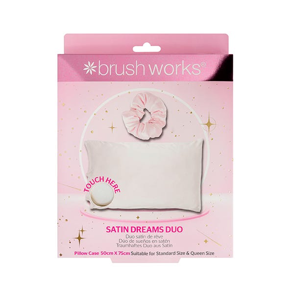 Para una mejor rutina nocturna, el Brushworks Satin Dreams Duo es la elección ideal: incluye una funda de almohada de satén y un coletero grande, diseñados para cuidar tu piel y tu cabello mientras duermes. Fabricado con satén de alta calidad, este dúo soñado es extremadamente suave al tacto y ofrece una protección eficaz contra la sequedad y la fricción.