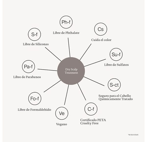 Tratamiento sin aclarado que proporciona alivio instantáneo y duradero de los sintomas del cuero cabelludo seco.