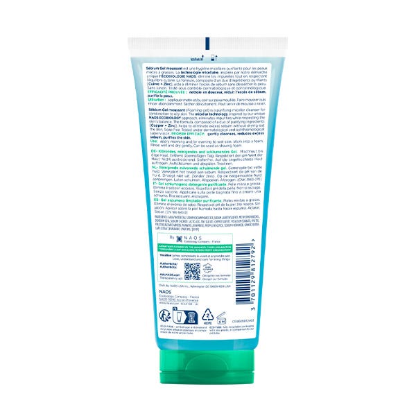 Sébium Gel Moussant limpia suavemente y purifica la piel sin resecarla. Este gel espumoso elimina el exceso de sebo y purifica la epidermis. Su fórmula ultrasuave respeta el equilibrio cutáneo. No reseca, sin jabón. No comedogénico.