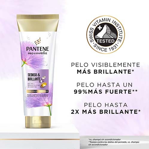 ¿Sueñas con tener un pelo sedoso y suave? Con el acondicionador Pantene Sedoso Y Brillante devolverás a tu pelo apagado y decolorado una sensación de vida y brillo. Nuestra fórmula con biotina y keratina reparadora contiene una mayor concentración de Pro-V, y está diseñada para ayudar a reparar el cabello tratado y dejarlo irresistiblemente suave como la seda.