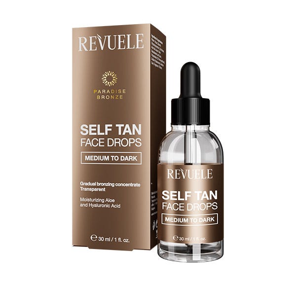 REVUELE GOTAS AUTOBRONCEADORAS PARA LA CARA DE CLARO A MEDIO. Este suero de bronceado gradual crea un tono bronceado perfectamente uniforme y de apariencia natural en cuestión de horas. Sólo una gota aumentará la luminosidad de tu piel y te brindará ese increíble y saludable brillo veraniego. ¡Controla tu bronceado deseado y disfruta de un rostro bañado por el sol, fresco e hidratado durante todo el año!