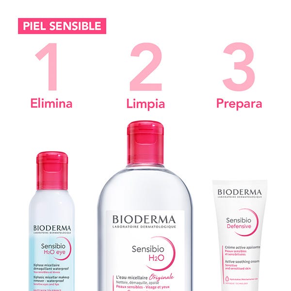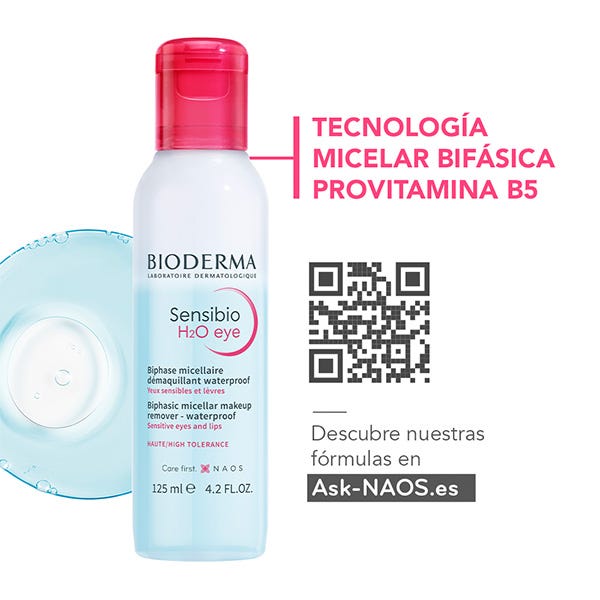 Sensibio H2O eye es un desmaquillante bifásico calmante de alta tolerancia para reforzar la barrera cutánea de la piel sensible. Para ojos y labios.