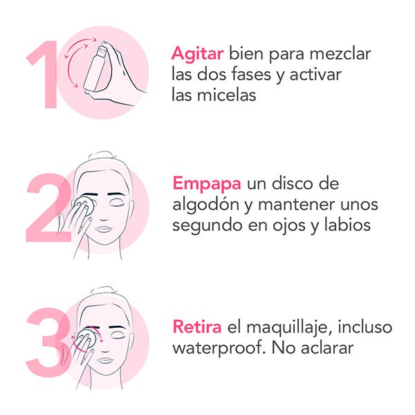 Elimina el maquillaje resistente al agua en ojos y labios.