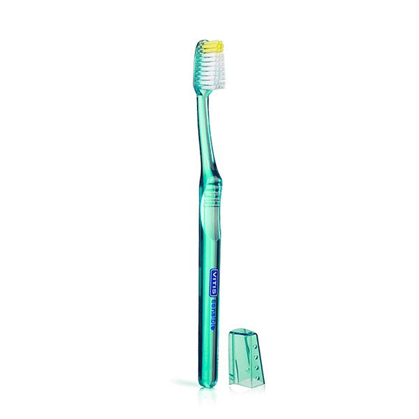El cuello del cepillo VITIS® sensible es maleable, de manera que se puede flexionar hasta adquirir la posición que mejor se adapta a la boca, favoreciendo así la accesibilidad durante el cepillado. El mango es anatómico y con estrías antideslizamiento para facilitar el uso y comodidad durante el cepillado.