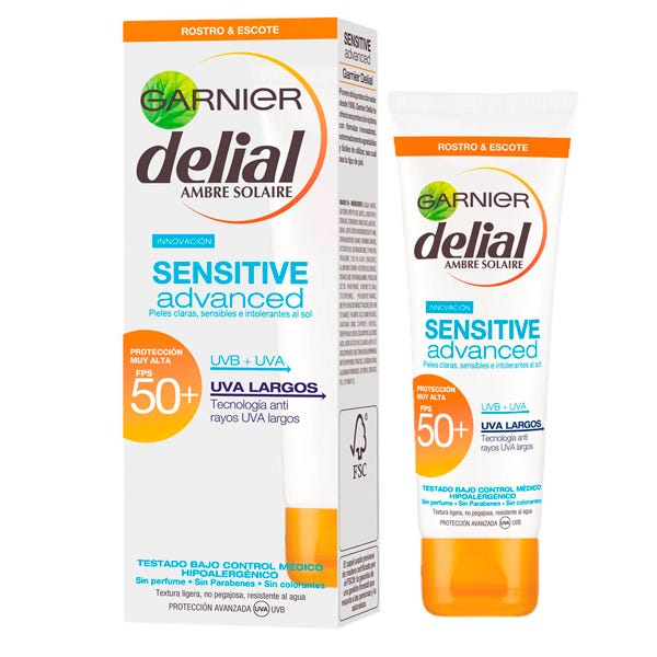 Incluso las pieles más sensibles están ahora protegidas gracias a la crema de protección solar Sensitive Advanced Rostro y Escote de Delial.