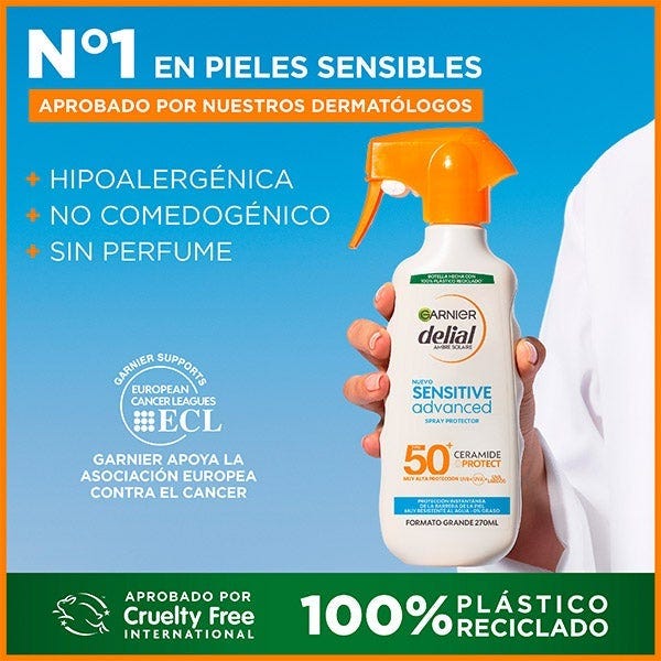 Para proteger hasta las pieles más sensibles nace el protector solar Sensitive Advanced spf 50+ en spray de Delial.