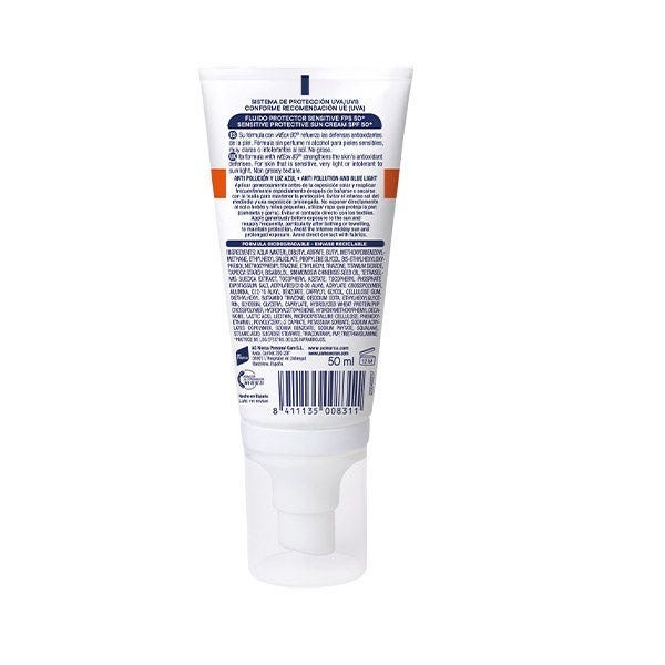 Fluido facial protector cara y escote para pieles sensibles y atópicas. Fórmula superior x4 anti: alergias solares, picores, rojeces y sequedad.