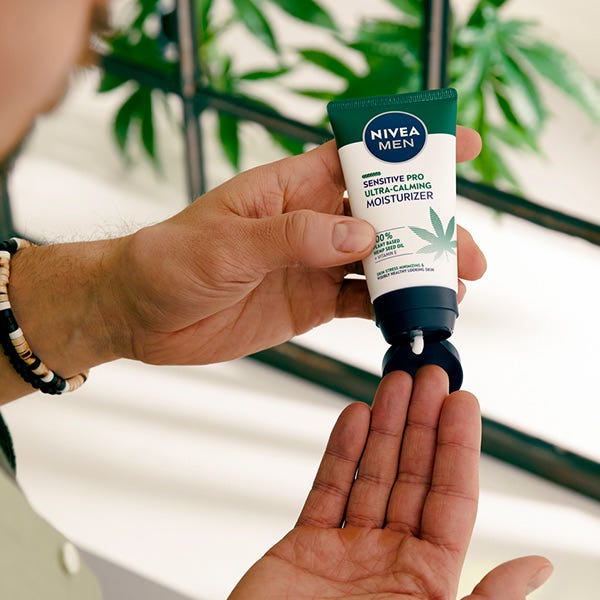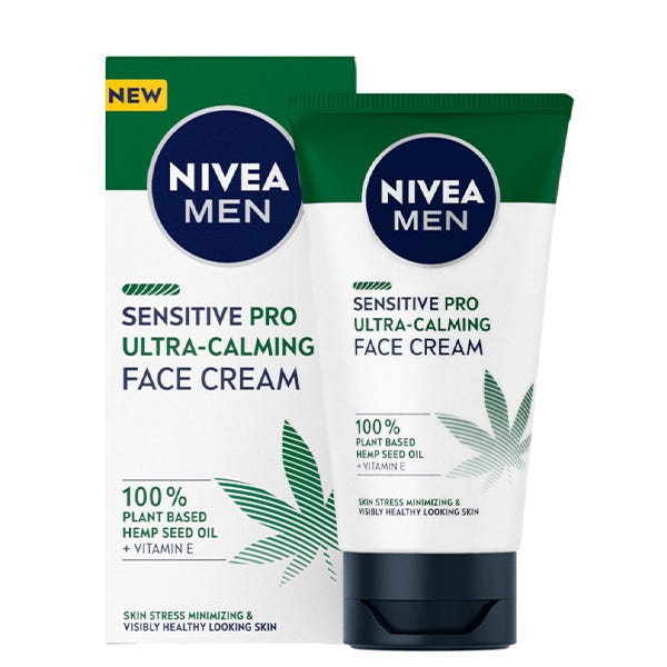 NIVEA MEN SENSITIVE PRO Ultra-Calming Crema Facial Hidratante minimiza instantáneamente los signos de estrés en la piel, como la sequedad, las irritaciones así como las líneas de expresión.