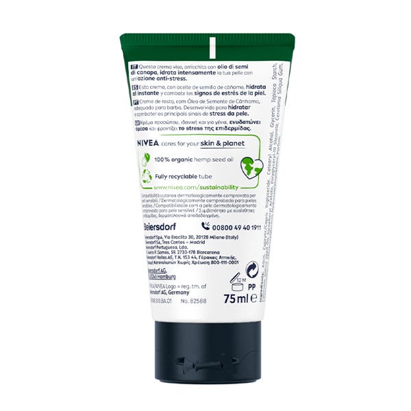 Su fórmula ligera con aceite de cáñamo 100% orgánico y vitamina E hidrata al instante tu piel durante 24 horas. Además, es de rápida absorción, no es grasa ni pegajosa y es apta para piel con barba. Esta crema hidratante cuida tanto tu piel como el planeta con su fórmula vegana, con aceite de cáñamo 100% orgánico y sin microplásticos y con una caja hecha con material 90% reciclado. Comprobado dermatológicamente en pieles sensibles.