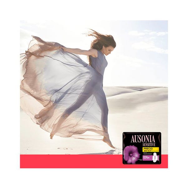 Las compresas Ausonia Sensitive Super con alas aseguran una adaptación perfecta al mismo tiempo que protegen los laterales de tus braguitas, tanto si te mueves como si no.