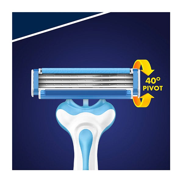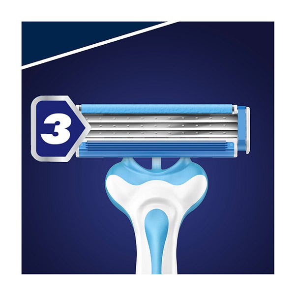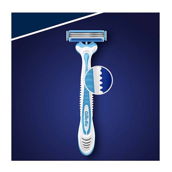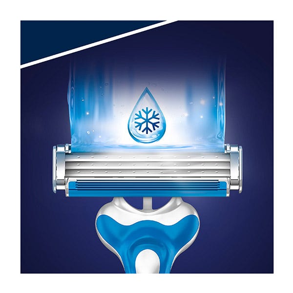 Sensor3 Cool de Gillette tiene 3 hojas sensibles con la piel revestidas de cromo y un cabezal pivotante que se adapta a los contornos de la cara. Su banda lubricante mejorada con tecnología Comfortfresh que se activa con el agua te ofrece un afeitado refrescante. La maquinilla incorpora un mango de goma antideslizante, que ofrece control y manejabilidad, y hojas dos veces más fáciles de aclarar (en comparación con las de BlueII Plus). El formato contiene 4 unidades.