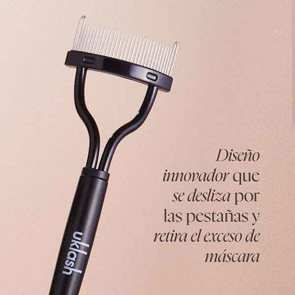 El separador de pestañas UKLASH es un innovador peine que se desliza a través de las pestañas para eliminar el exceso de máscara, dejándolas separadas, definidas y sin grumos.