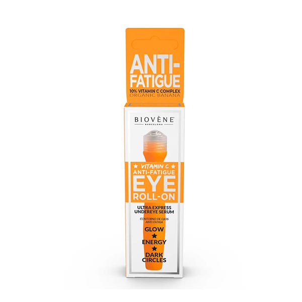 Sérum roll-on antifatiga y deshinchable para el contorno de ojos con Vitamina C iluminadora y Plátano Orgánico indicado para todo tipo de pieles afectadas por las arrugas del contorno de ojos, bolsas y ojeras.