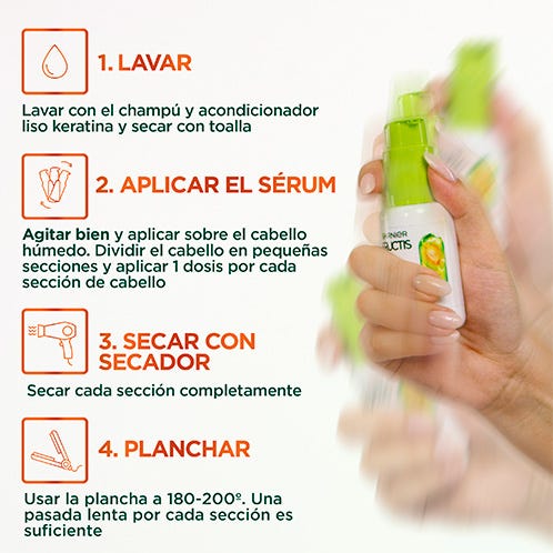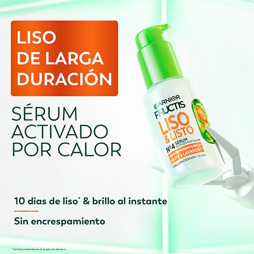Garnier Fructis Nº4 Sérum Activado por calor Liso & Listo para cabello encrespado, proporciona hasta 10 días de liso & brillo(1).
