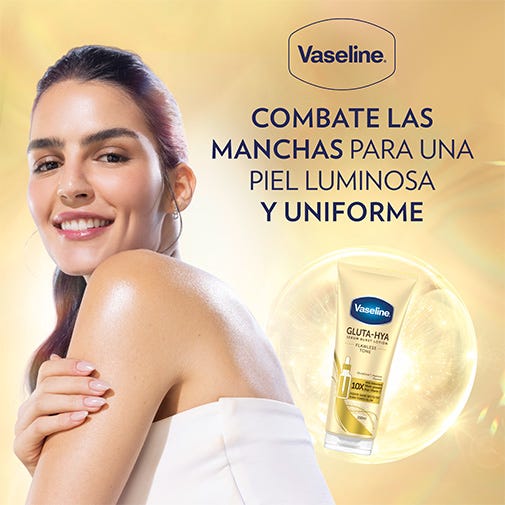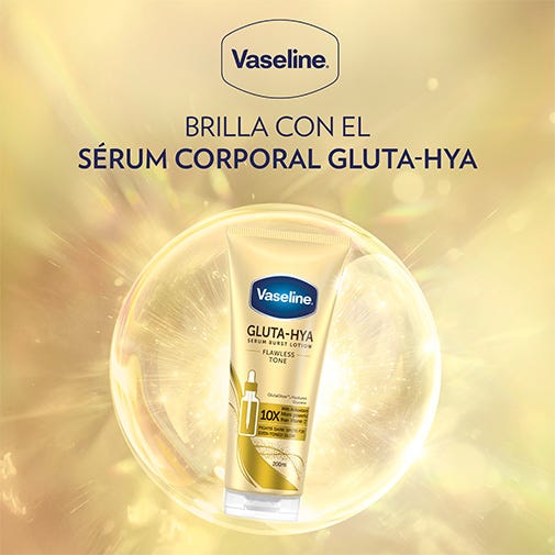 Consigue un tono radiante y uniforme con el sérum corporal Vaseline Gluta-Hya Flawless Tone. Su fórmula única está potenciada por la tecnología GlutaGlow™, con antioxidantes 10 veces más potentes que la vitamina C1, para combatir la opacidad y dejar una piel radiante y luminosa. Nuestro sérum corporal también está elaborado con ácido hialurónico, glicerol y vaselina para hidratar la piel y retener la hidratación profunda2 para una luminosidad más saludable. Piel con un tono más uniforme en solo 5 días3. Nuestra exclusiva fórmula de rápida absorción estalla en finas gotas de agua, absorbiéndose al instante y dejando una sensación suave y aterciopelada.
