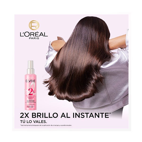 Un pelo brillante es sinónimo de un pelo cuidado, porque su superficie lisa refleja perfectamente la luz. Pero el cabello dañado altera las cutículas y hace que las fibras se vuelvan ásperas y opacas, incapaces de reflejar la luz. Consigue un cabello más brillante al instante con el Glycolic Gloss Sérum Glass Hair sin aclarado, enriquecido con ácido glicólico. Nuestro Sérum Glass Hair aporta x10 más suavidad* durante 72h sin apelmazar.