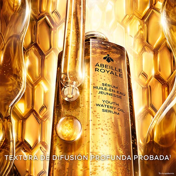 Reparación profunda de los signos de la edad desde las primeras gotas¹. El Sérum Aceite Acuoso de Juventud combina 3 mieles reparadoras de abeja negra para potenciar los mecanismos de reparación de la piel. La piel está visiblemente más joven y las arrugas parecen rellenarse.