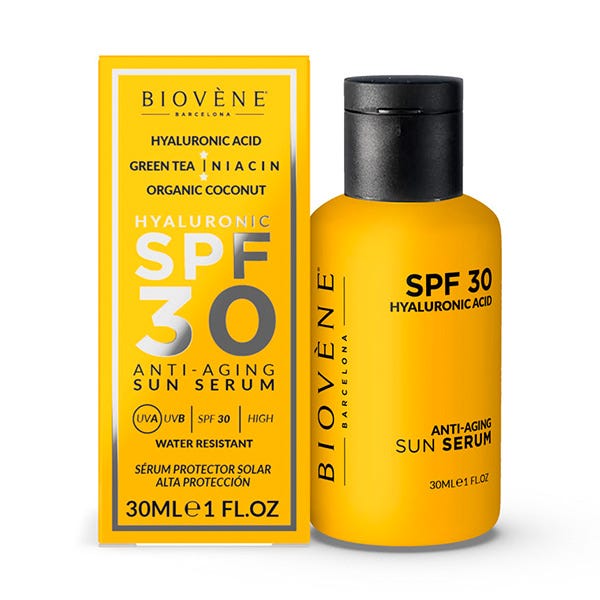 Proteja tu piel con el suero de protección solar portátil más conveniente hecho con ingredientes extremadamente humectantes y antienvejecimiento, ácido hialurónico, niacinamida y coco orgánico.