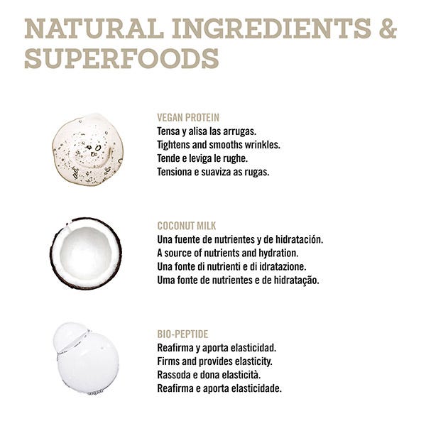 - PROTEÍNA VEGANA: tensa y alisa las arrugas.