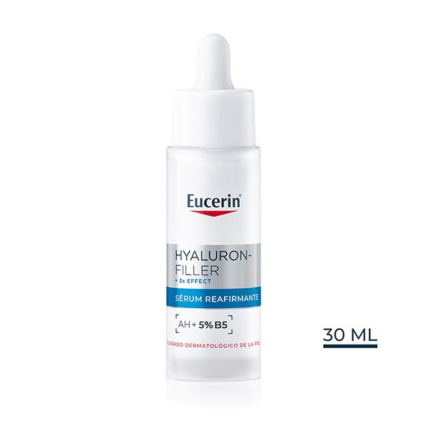 Eucerin Hyaluron-Filler Sérum Reafirmante rellena las arrugas gracias al microÁcido Hialurónico, que retiene la humedad de la piel y minimiza su aspecto. La Ectoína favorece aún más la resiliencia de la piel, garantizando una suavidad duradera.
