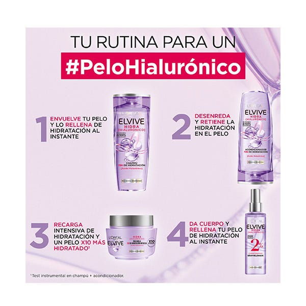 Conoce el nuevo Sérum Rellenador con un 2% de Complejo Hialurónico que da cuerpo y rellena tu pelo de hidratación al instante. El Sérum Hidra Hialurónico, rellena la fibra capilar de hidratación al instante.