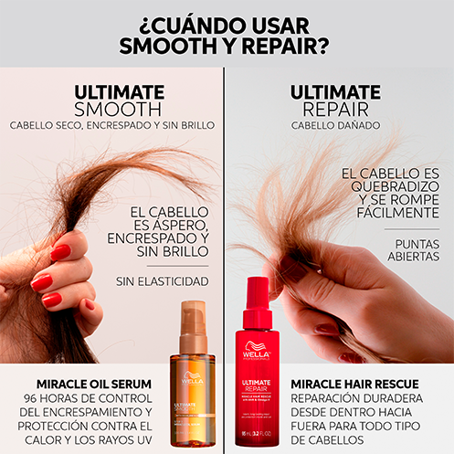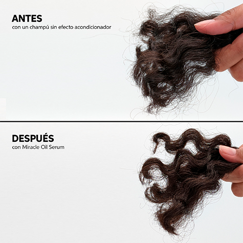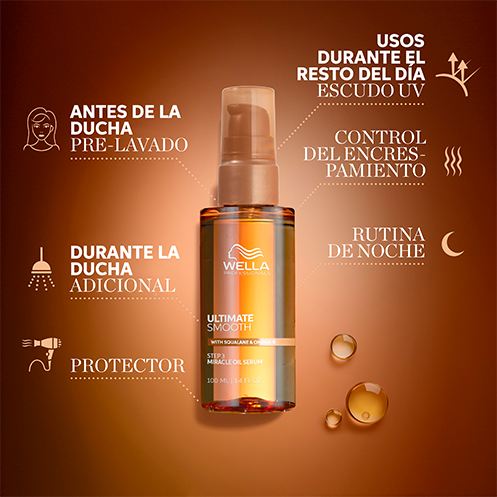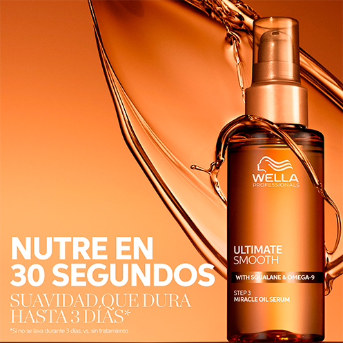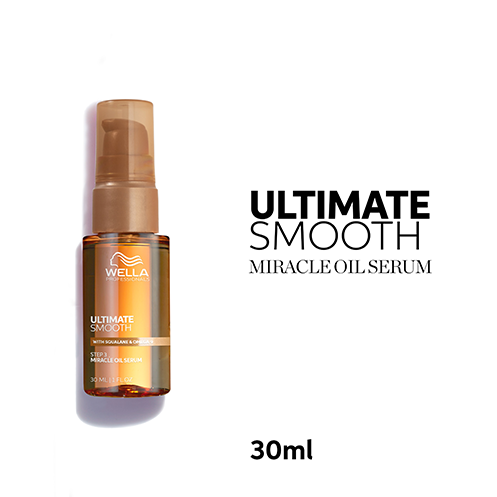 El aceite capilar Miracle Oil Serum de la línea Ultimate Smooth de Wella Professionals forma parte de la rutina profesional de cuidado capilar diseñada para proporcionar nutrición y suavidad al cabello seco, encrespado y sin brillo. Miracle Oil Serum es un sérum capilar delicado (con textura de aceite), que nutre en profundidad el cabello por dentro y por fuera, dejándolo visiblemente más suave y brillante. Nutre el cabello en 30 segundos, aportándole suavidad que dura hasta 3 días.