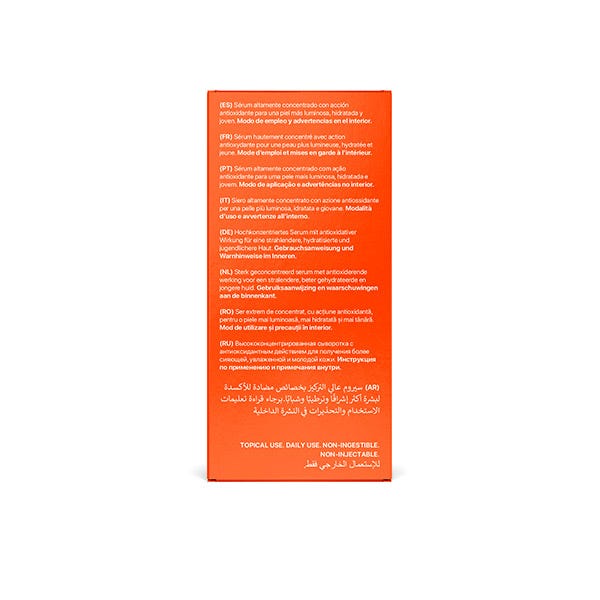 Sérum altamente concentrado con acción antioxidante para una piel más luminosa, hidratada y joven.