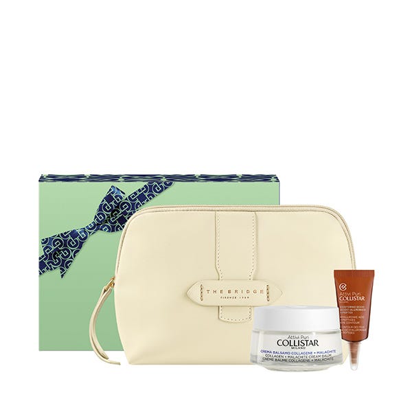 The Bridge, marca de referencia de marroquinería italiana, firma los exclusivos Beauty-Bags de los estuches regalo Collistar. Los estuches contienen los productos más populares de Collistar.