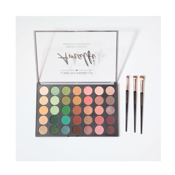 Contiene 35 sombras de ojos y tres brochas para conseguir tus mejores looks. Podrás encontrar sombras mate y sombras brillo; y colores muy naturales y muy coloridos.