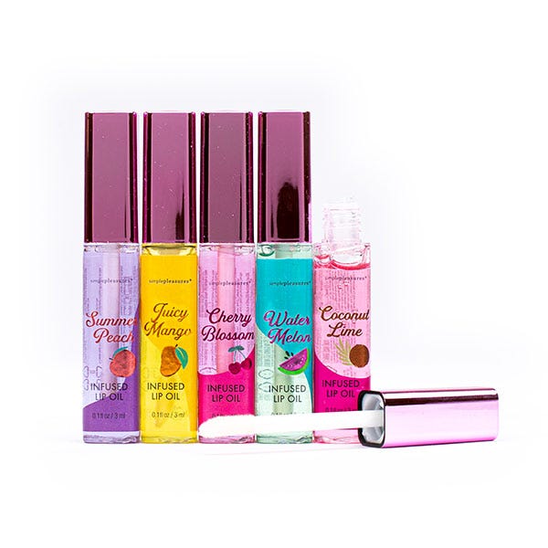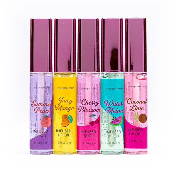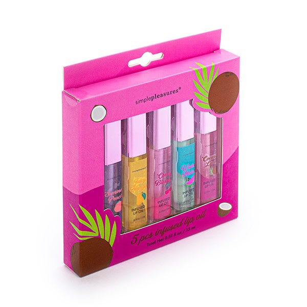 Set de 5 aceites labiales con sabor a frutas, que hidratan tus labios en profundidad.
