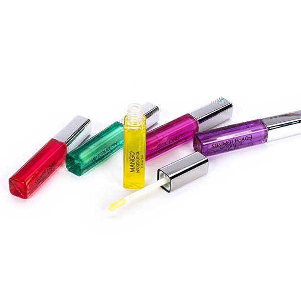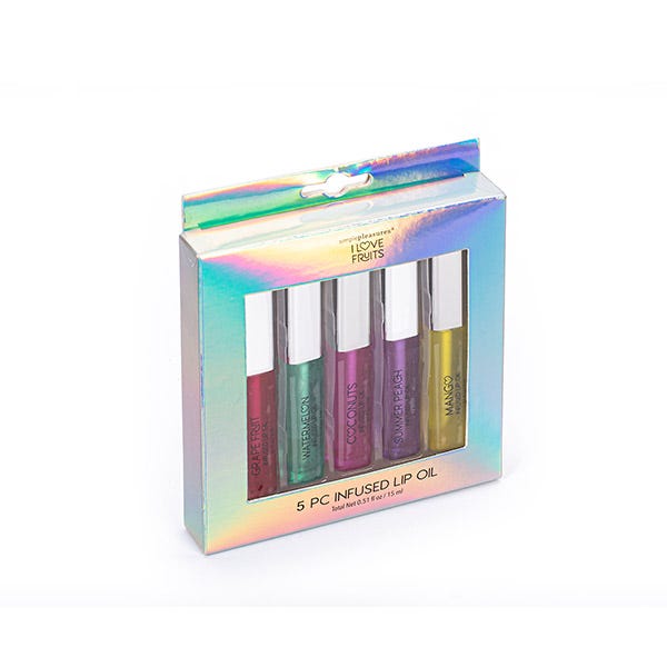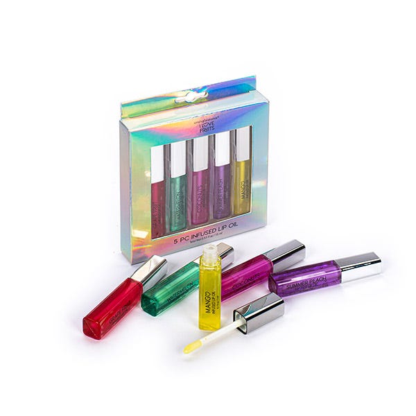 Set de 5 aceites labiales con sabor a frutas, que hidratan tus labios en profundidad y les aportan un aspecto joven y jugoso.