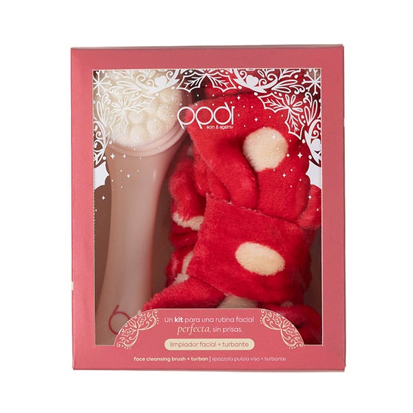 El kit incluye un cepillo manual 2 en 1, nuestro Lucea, creado para exfoliar y limpiar tu rostro de manera profunda junto con un turbante con el que sentirte «forever young» para sujetar los mechones inoportunos mientras disfrutas de tu momento beauty.