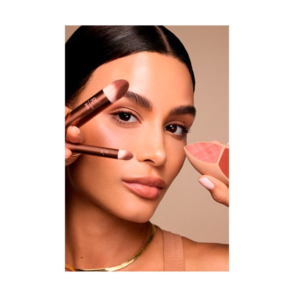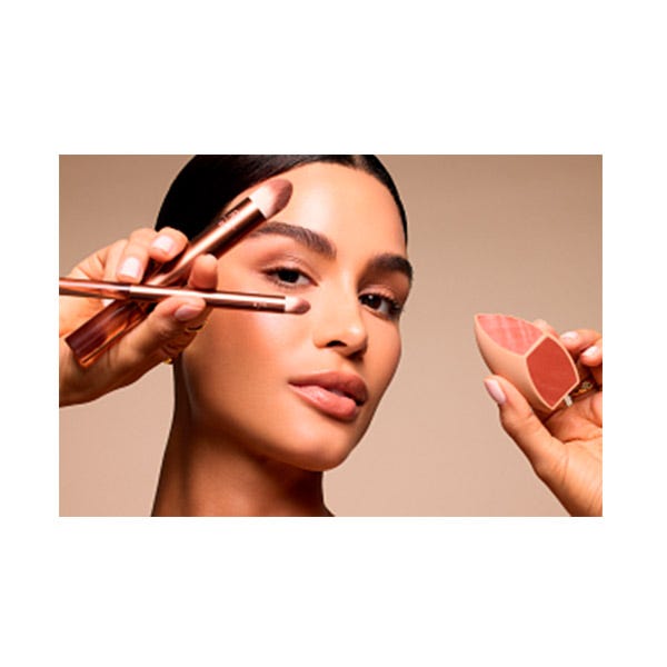 El mismo acabado ligero que obtienes con tus manos, pero en un formato más higiénico, además de una mejor difuminación y las brochas adecuadas para una aplicación sencilla.