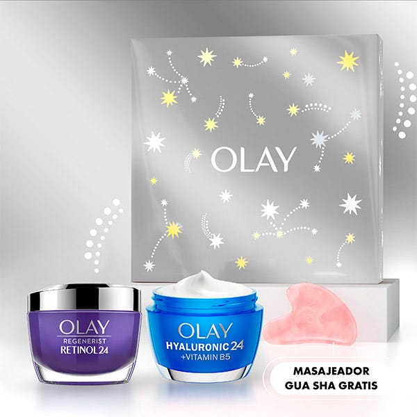 En OLAY te lo ponemos fácil con este estuche compuesto por una crema de día y una crema de noche, que incluye un masajeador guasha de regalo para elevar tu rutina de skin care al siguiente nivel. Si es para ti, te guardamos el secreto. Disfruta de una piel suave y radiante en 14 días con este super pack de OLAY.