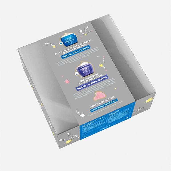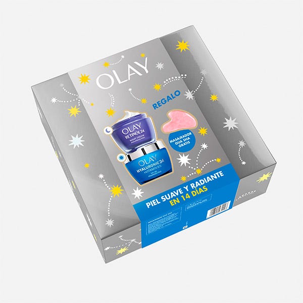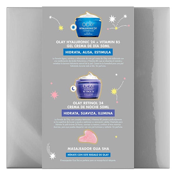 Olay Set De Regalo Con Masajeador Gua Sha + Olay Hyaluronic 24 + Vitamina B5, Gel Crema De Día Con Ácido Hialurónico, 50 ml + Olay Retinol 24 Crema De Noche, Con Complejo Retinoide Y Niacinamida, Sin Perfume, 50ml