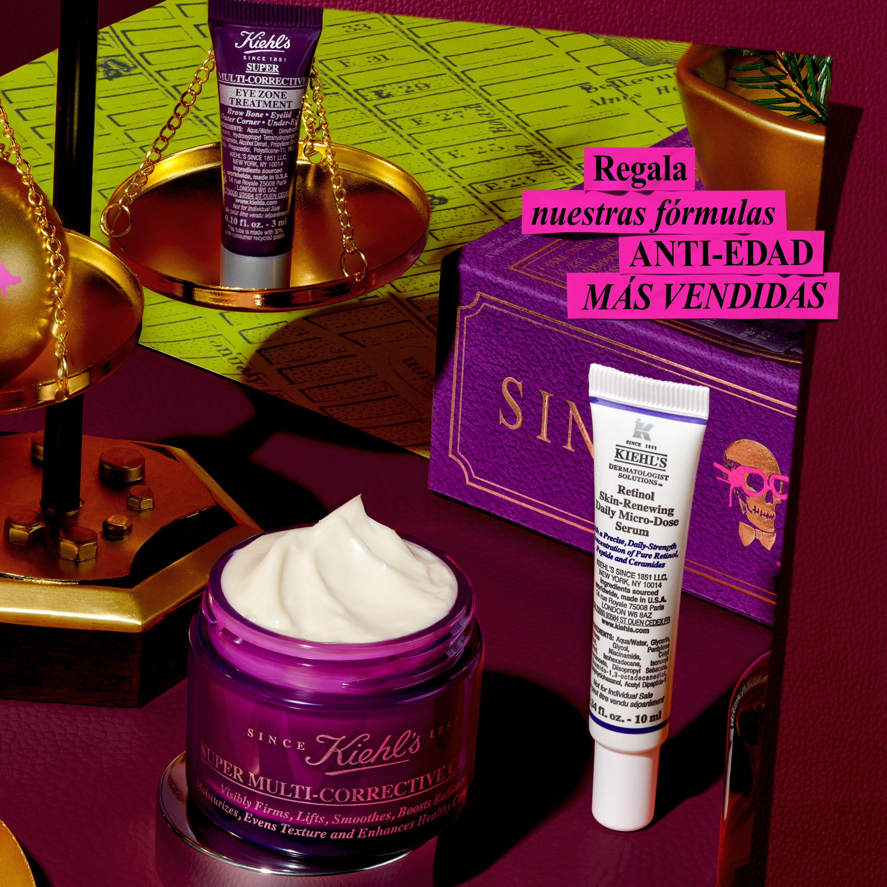 Celebra esta Navidad con el Cofre Anti-edad de Kiehl’s, diseñado para corregir múltiples signos del envejecimiento en rostro, cuello y contorno de ojos. La crema Super Multi-Corrective Cream (50 ml) alisa visiblemente arrugas y líneas de expresión, mejora la elasticidad y aporta luminosidad.