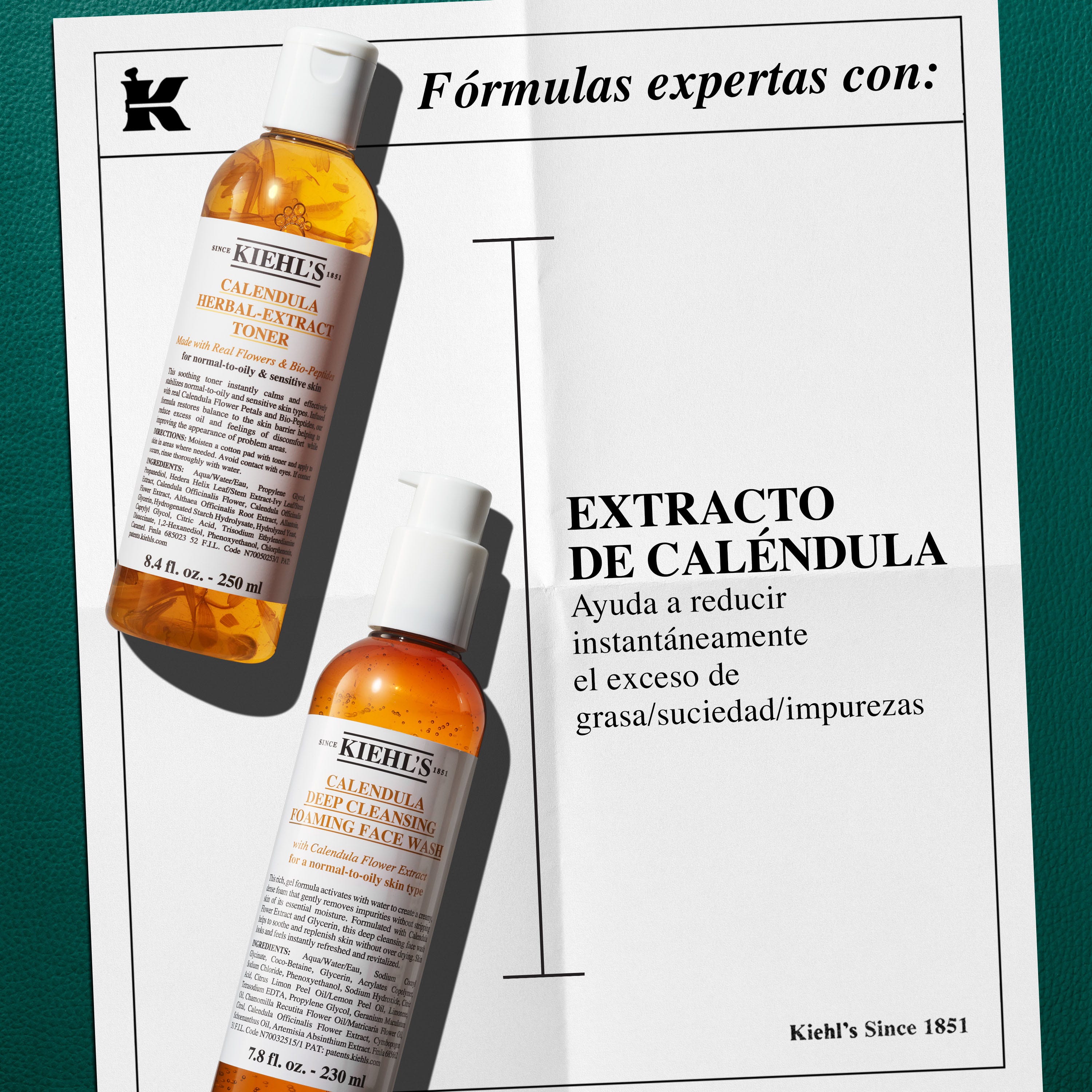 El limpiador Calendula Deep Cleansing Foaming Face Wash elimina suavemente impurezas y exceso de grasa sin resecar la piel, mientras que el tónico Calendula Herbal-Extract Toner sin alcohol calma, controla el brillo y tonifica, dejando la piel equilibrada y confortable.
