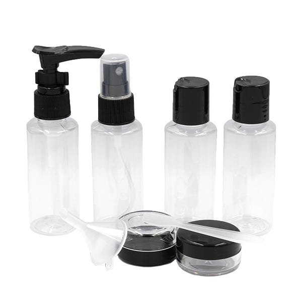 Un práctico neceser que incluye 6 frascos reutilizables que podrás rellenar con tus geles, cremas o líquidos favoritos para llevarlos siempre encima por lo que pueda surgir.