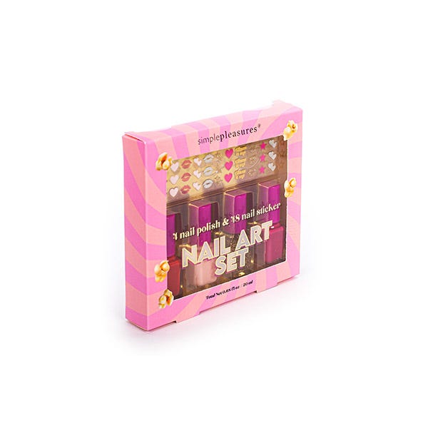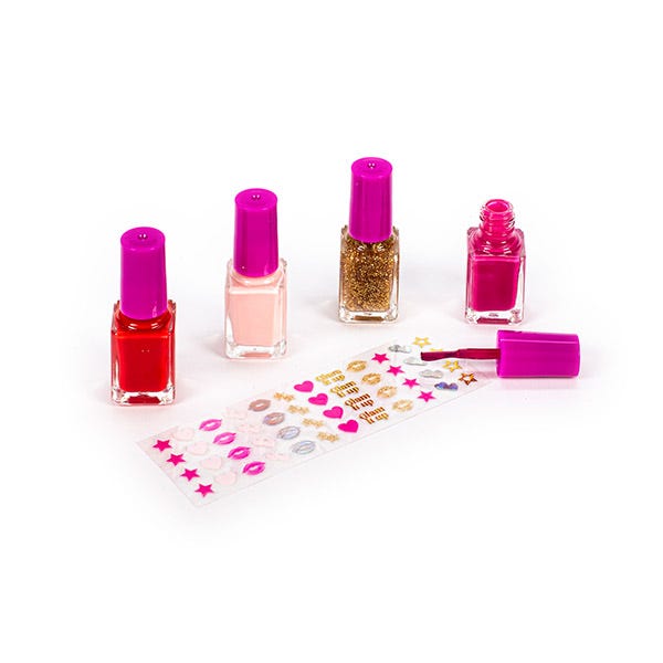 Contiene 4 esmaltes de alta duración y pigmentación, además de pegatinas para poder decorar tus uñas como una profesional.