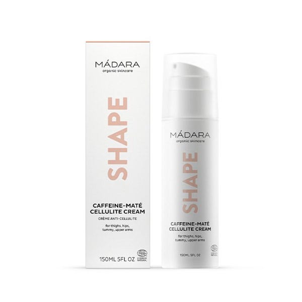 Shape Caffeine-Maté crema anticelulítica crema corporal natural y certificada que hidrata y tonifica la piel para una apariencia más firme y suave. Enriquecida con cafeína estimulante y extractos de castaño de indias, espirulina y té mate, la fórmula ofrece un efecto de poder que activa la circulación en las caderas, los muslos, el abdomen y la parte superior de los brazos.