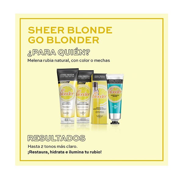 Consigue un rubio más claro que se sienta tan bien como se ve. Nuestro Champú Go Blonder renueva el aspecto y el tacto del cabello rubio, sin resecarlo.