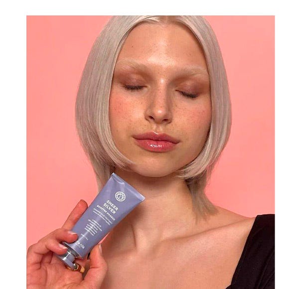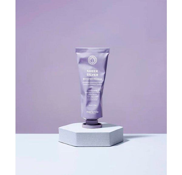 Después de usar el champú Maria Nila Sheer Soft, aplique la mascarilla potenciadora Maria Nila Sheer Silver en medios y puntas. Dejar actuar 3 minutos y enjuagar abundantemente.