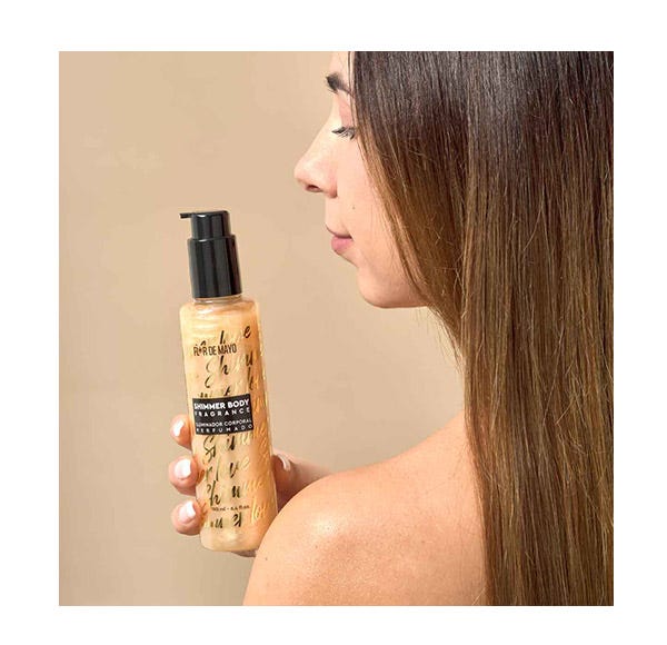 Una bruma corporal iluminadora con suaves destellos de glitter y un aroma floral y apolvado que libera una estela de sensualidad inolvidable.